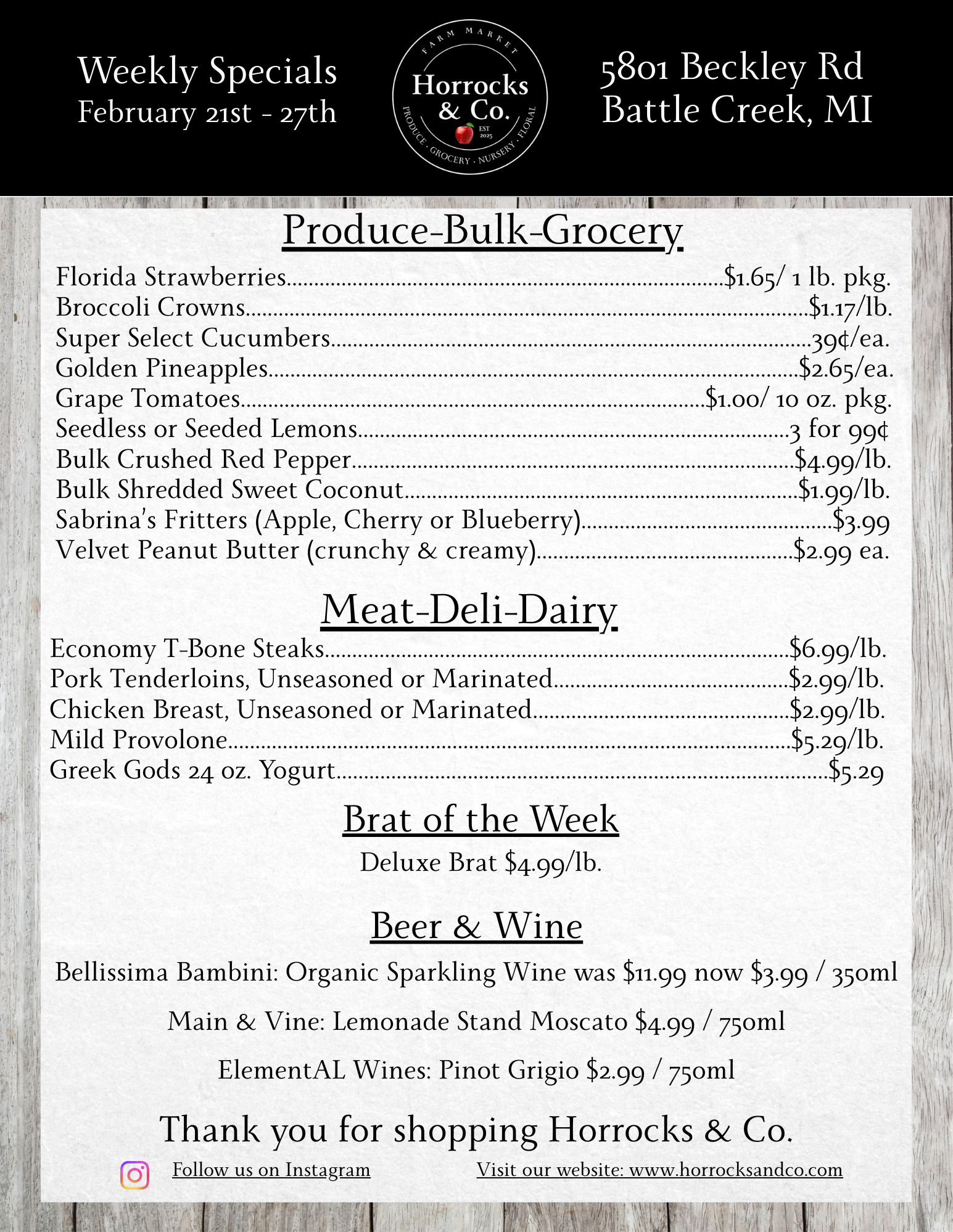 Check out our Weekly Specials February 21st-27th Subject to change based on availability Did you know we make fruit baskets all year? They would make the perfect birthday gift!